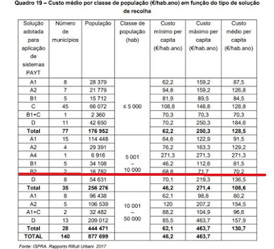 Fig 3) Custo médio, hab/ano, do sistema payt em Itália, em função da solução de recolha adotado,